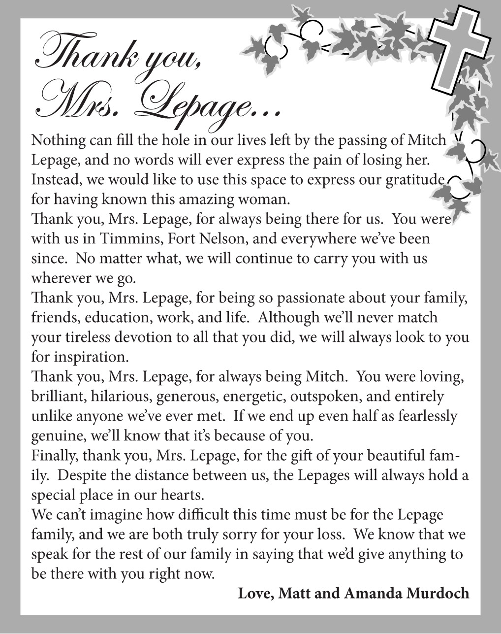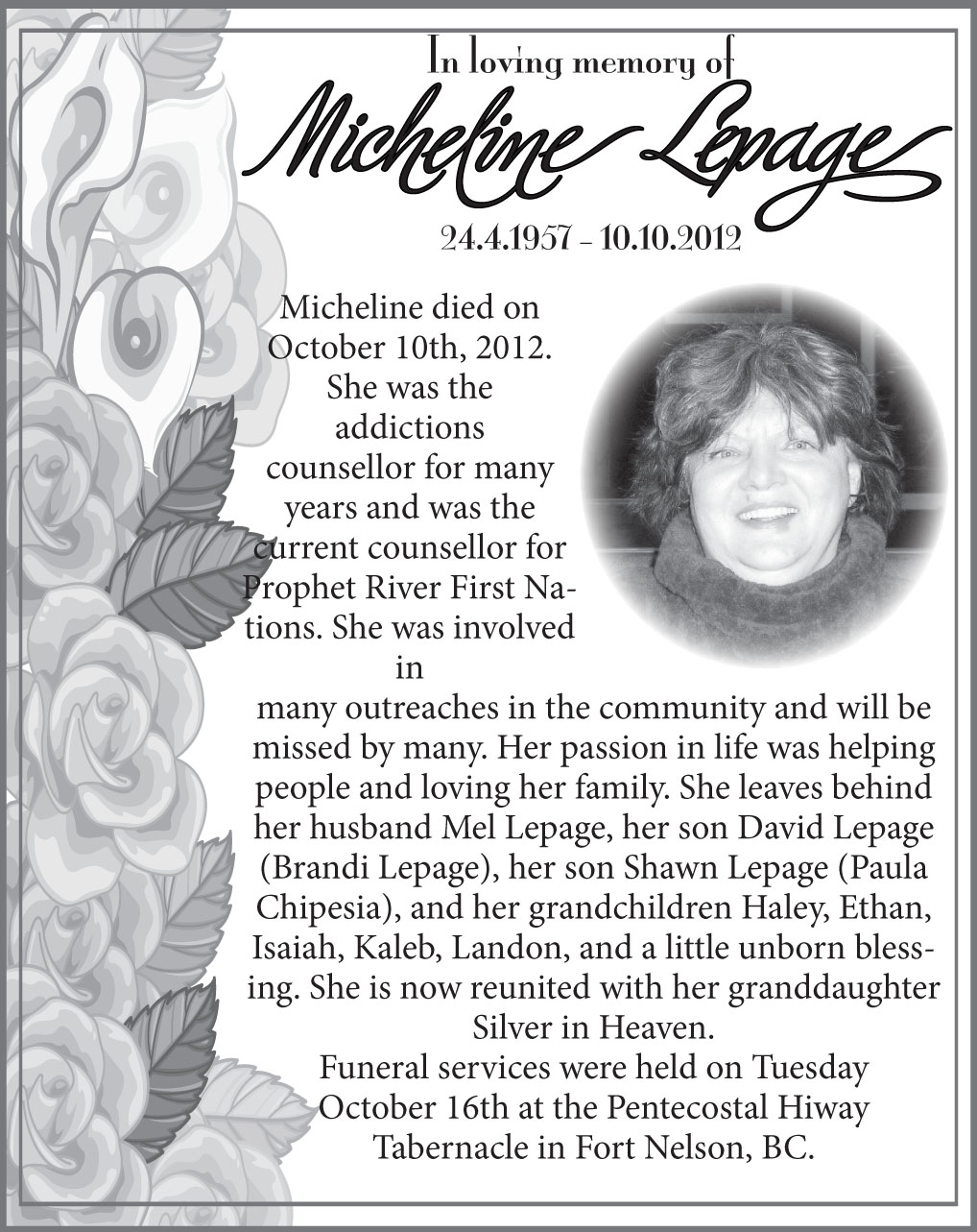 Obituary – Micheline Lepage