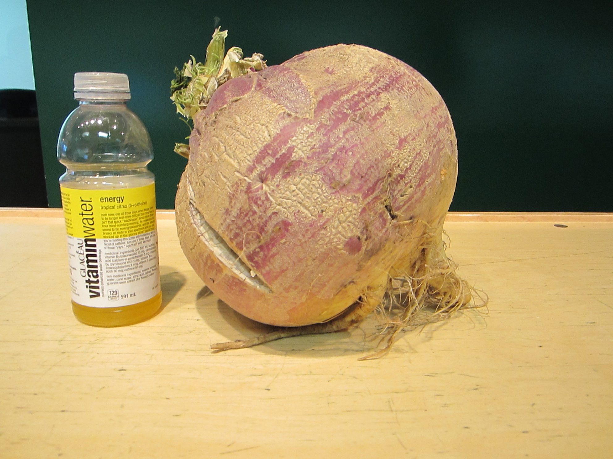 This 13 pound turnip was grown by local gardening enthusiast Ron Kushnerek, with the help of his wife Shirley, in their backyard garden. The turnip grew from a wayward turnip seed that wasn’t tended to in any special way. No fertilisers or growth-enhancers were used in the growing of this massive turnip. This is the second time this month that the Fort Nelson News has had opportunity to view an oversized vegetable that started its life as a rogue seed. The first was last week’s giant carrot grown by Nomie Seidel.