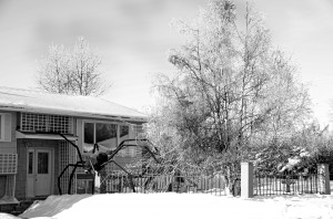 “Along came a spider who sat down beside her…” This scarefully themed home is on Sunset Drive.