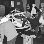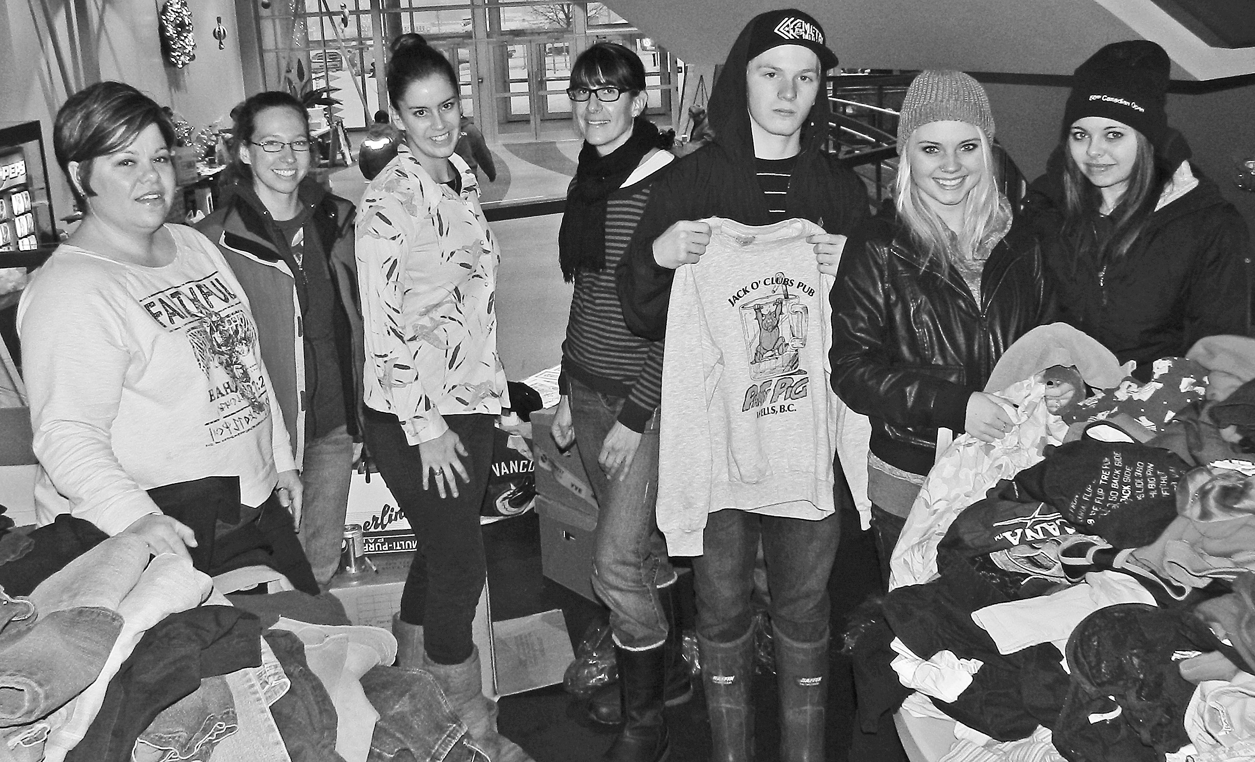 Encana and NEAT’s third annual clothing exchange at the Recreation Centre on Saturday was a great success.  NEAT Eco-Advisor Liz Biggar says, “An astonishing 2/3 of the clothing items were gone by the end of the day, with lots of teens and other community members stopping in to see what was available.”  The last wedding dress in the selection was obtained by a bride to be, and the bold red detail on the back of it matches her wedding colours.  Robbie-Lynn, Karen and Liz (NEAT), and Angela (Encana), joined some of the teens; Grant, JodiLee, and Megan for a photo.