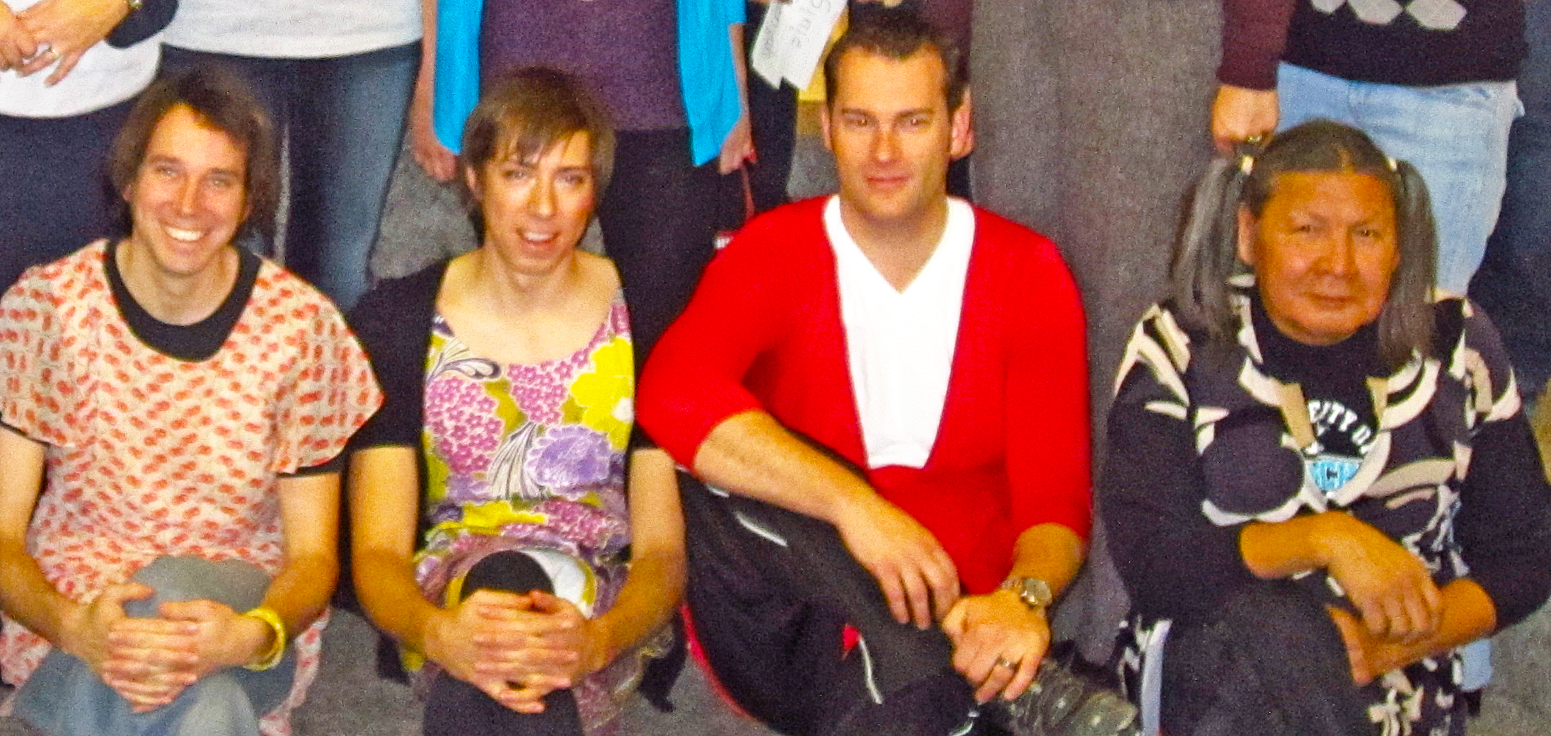 Male teachers in dresses, Tim Trant, Bryce Ross, Ed Young, and Raymond Needlay.