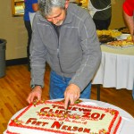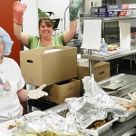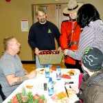FORT NELSON – To celebrate the 20th anniversary of the Community Christmas Dinner, President of the Emergency Services Christmas Dinner Society, Rob Blain, and RCMP Constable Chance Craig handed out commemorative Christmas tree ornaments to visitors.  It takes a great number of volunteers to run the superbly successful community dinner, and each year the society is in need of more hands on deck.  Rob Blain says, “We are definitely in need of committed volunteers for next year.  The event has grown and it takes a lot more people to run it.  For whatever reason some volunteers could not make it this year, and we’ve lost quite a few who were really dedicated.” Some volunteers begin working before dawn and finish well after the dinner is closed, so the society hopes to attract more volunteers to sign on for two-hour shifts next year and share the workload.  If you or your business can spare some helping hands, please contact Rob at:  rob@robblain.com.  Planning for the dinner begins the Sunday following Hallowe’en.