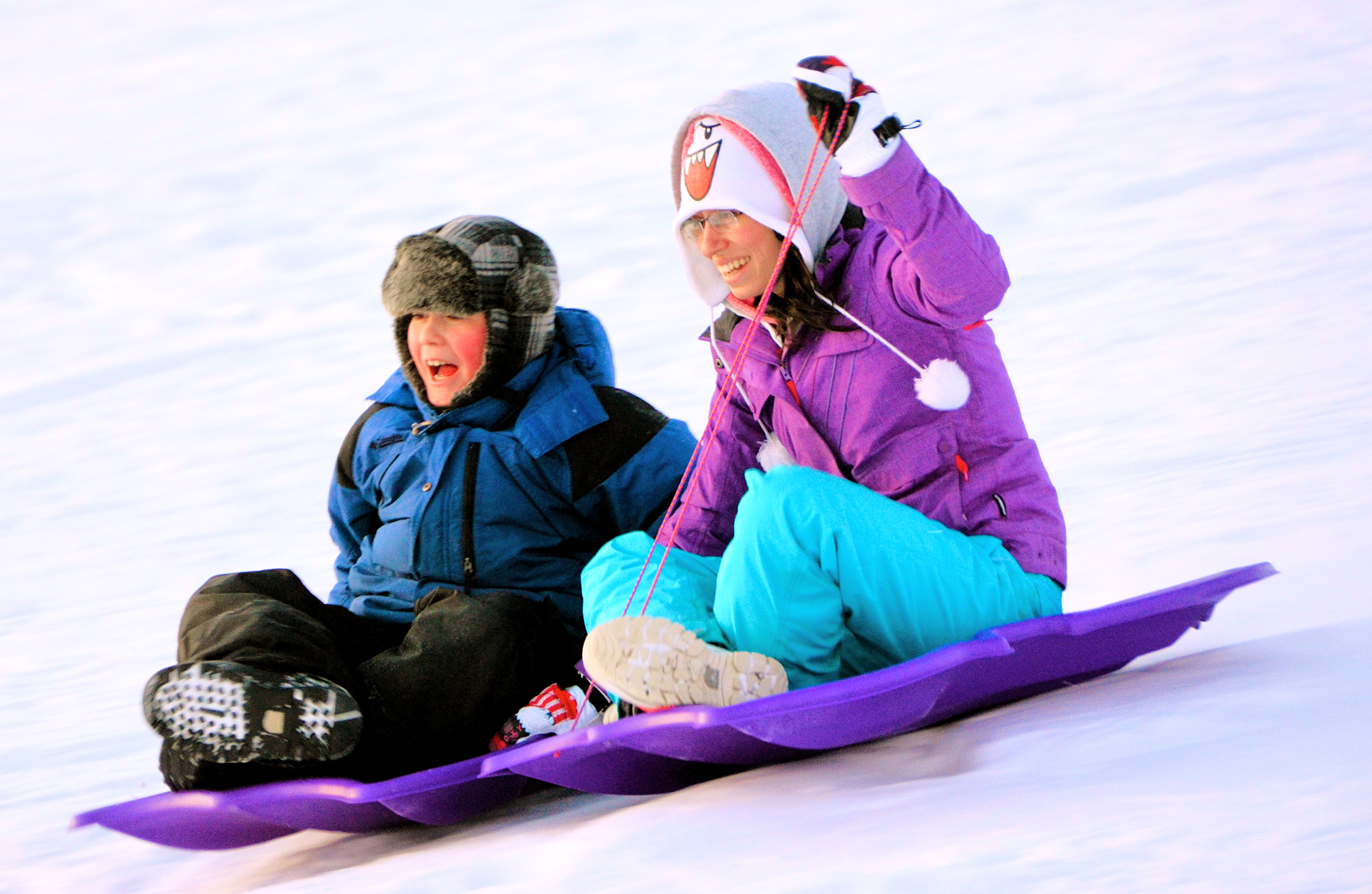 Warmer weather brought out families who enjoyed the smooth sliding on the Rec Centre hill.