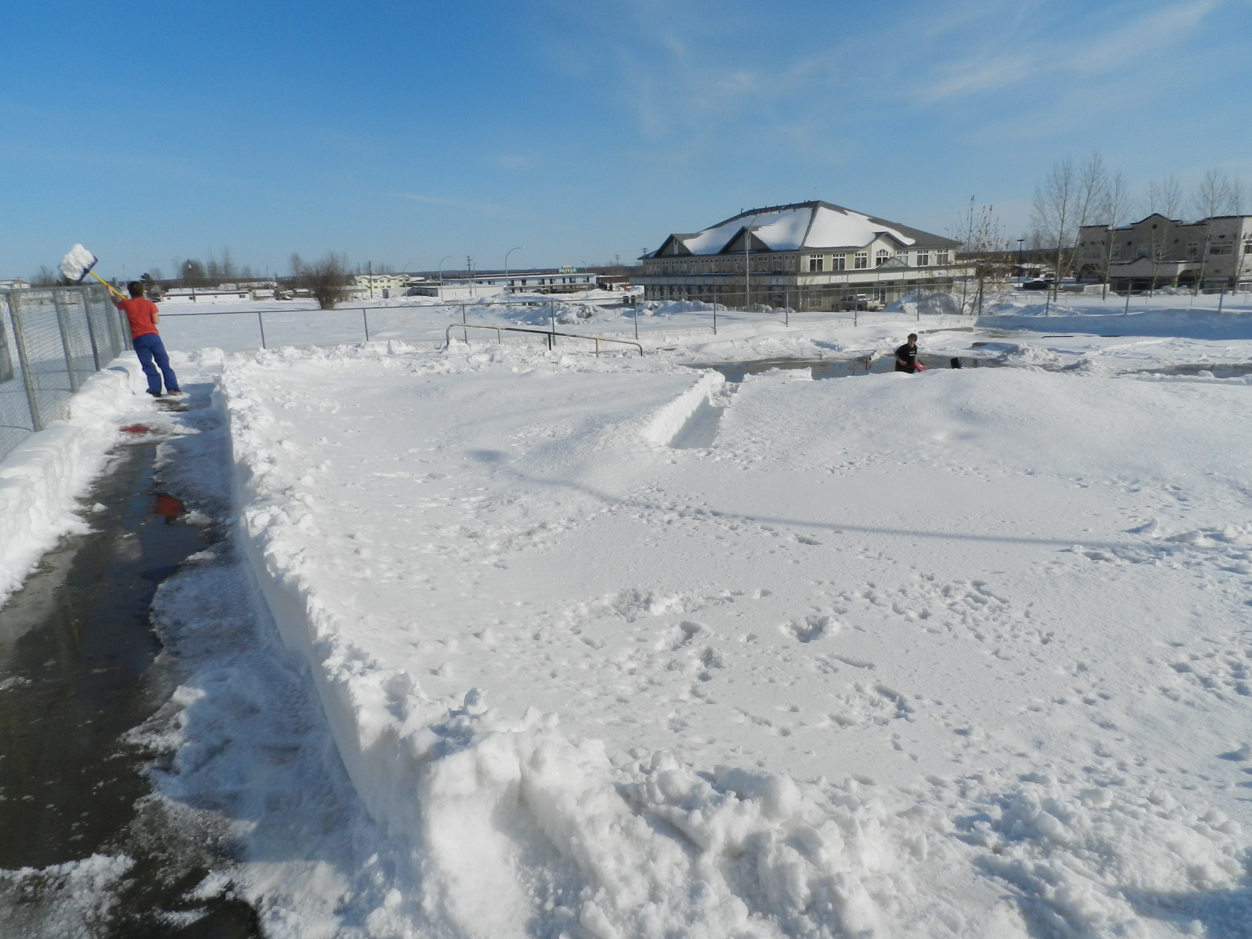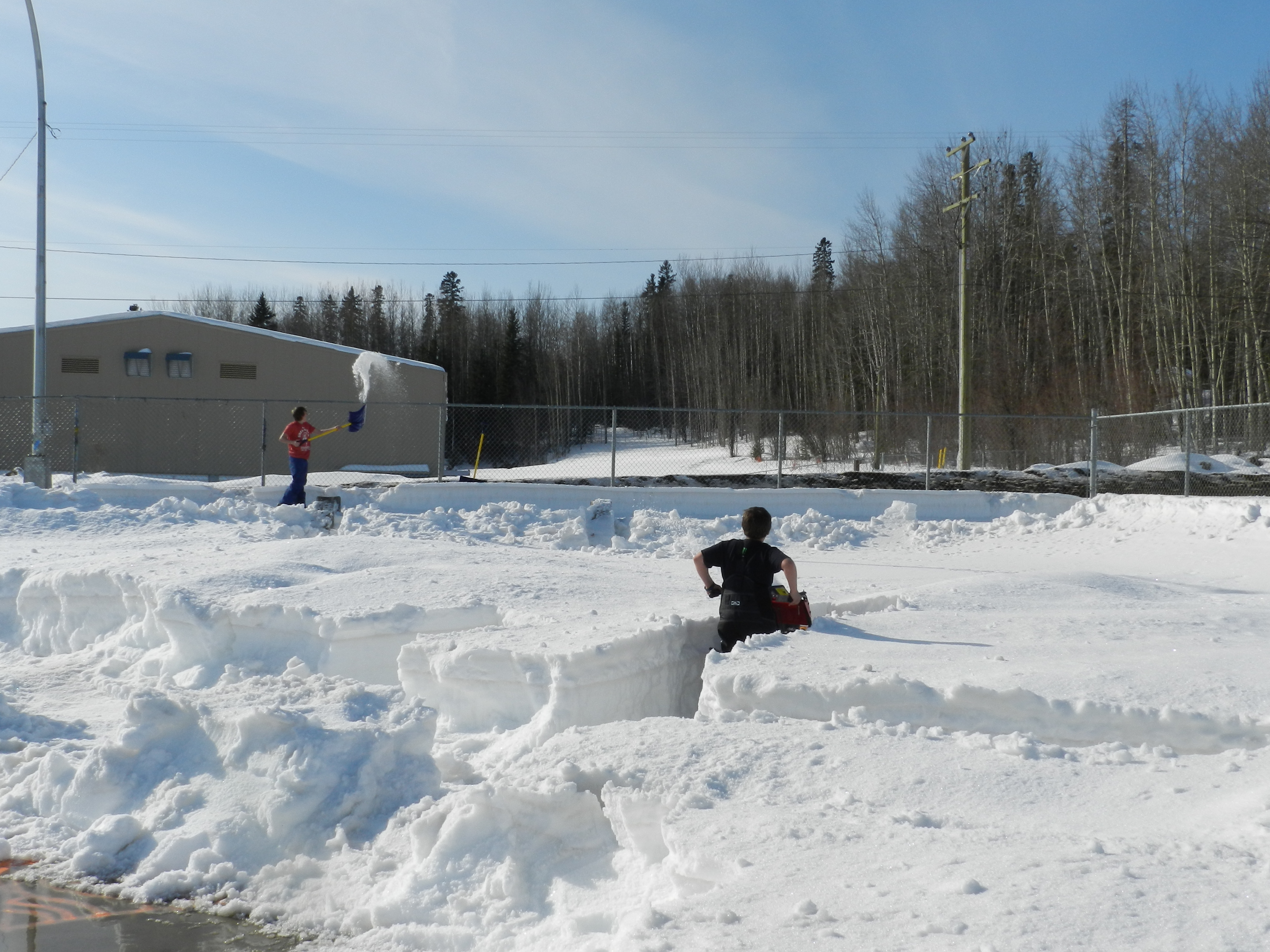 Passersby were thrilled to see these two young men hard at work at the skateboard park. Urging springtime to arrive, 13-year-olds Shae Mould and Dallas McAdam spent hours snowblowing and shovelling several feet of snow off the surface of the park on the weekend. Owner of Wier Full of Beans – the Bistro, Colleen Reynolds, sent along cups of hot chocolate. With warmer than usual temperatures Shae and Dallas asked their parents to help haul the equipment over so they could embark on the big task. If the weather remains the same, the boys hope to have the park ready in about another week.