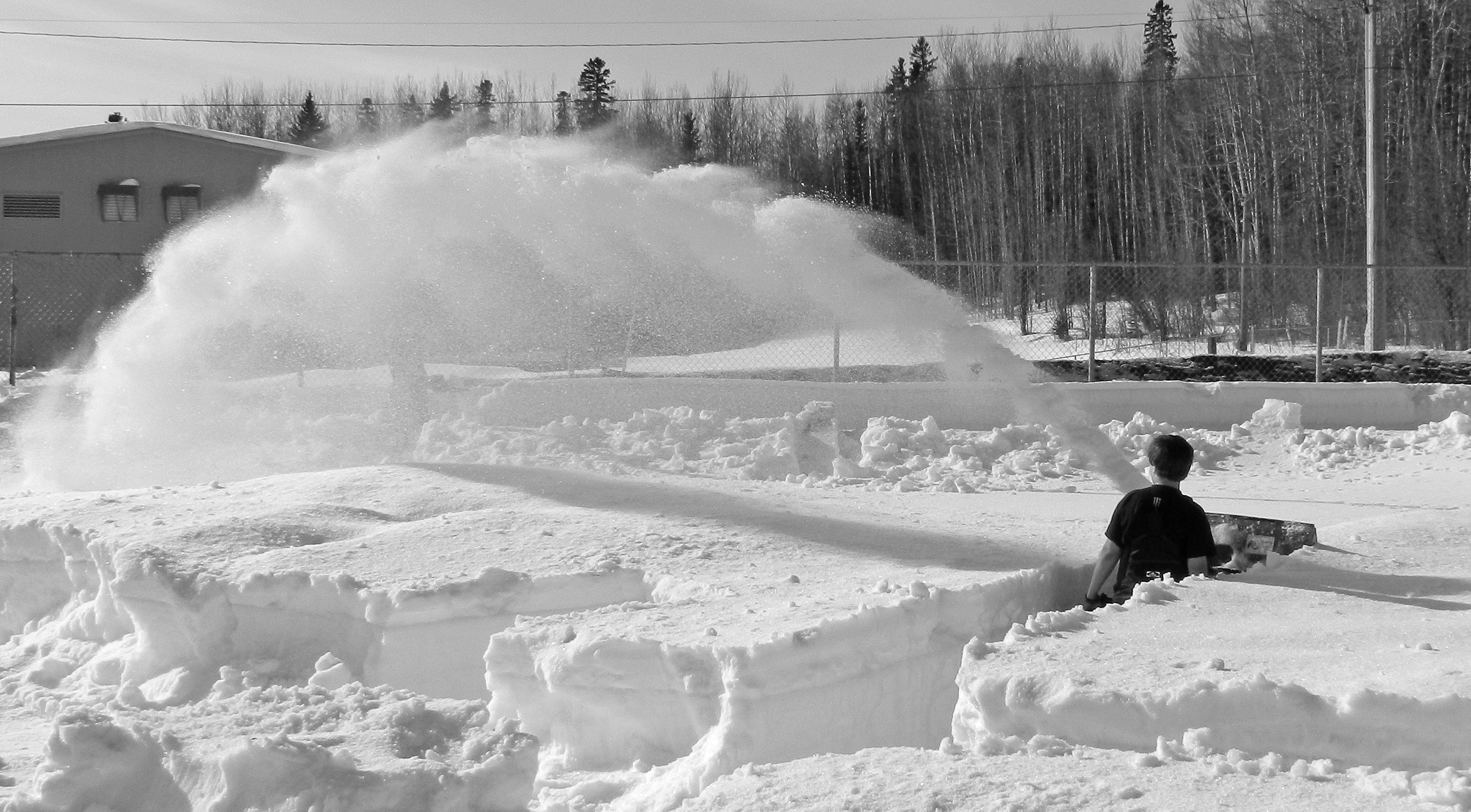 Dallas up to his elbows making paths through the deeper snow, while Shae kept up with the shovelling behind the spray of white. Photos by Kathy Smith