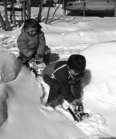 Gage Richter and Owen Mould dug out the summer toys and are building road in the snow at Linda Mould’s house.”Our youngest Grand Girl Gabi Richter..wearing her new ‘boot’’ a man’s glove she lost her boot while 4-wheeling,” Linda said.