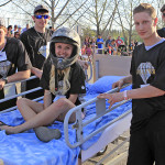 The annual charity bed race hosted by the Fort Nelson Hospital & Healthcare Foundation was another big success this year. A grand total of $25,000 was raised for the Foundation. On Friday, May 24th, 14 teams participated in the 8th annual event with hopes of pushing their way to the winner’s circle. There were six teams racing in the Community at Large category sponsored by Boston Pizza, and eight teams in the Business category sponsored by Qwest Helicopters.