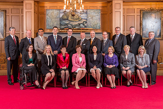 Nine former Liberal cabinet members, seven newcomers and two from the back benchers in the previous legislature.