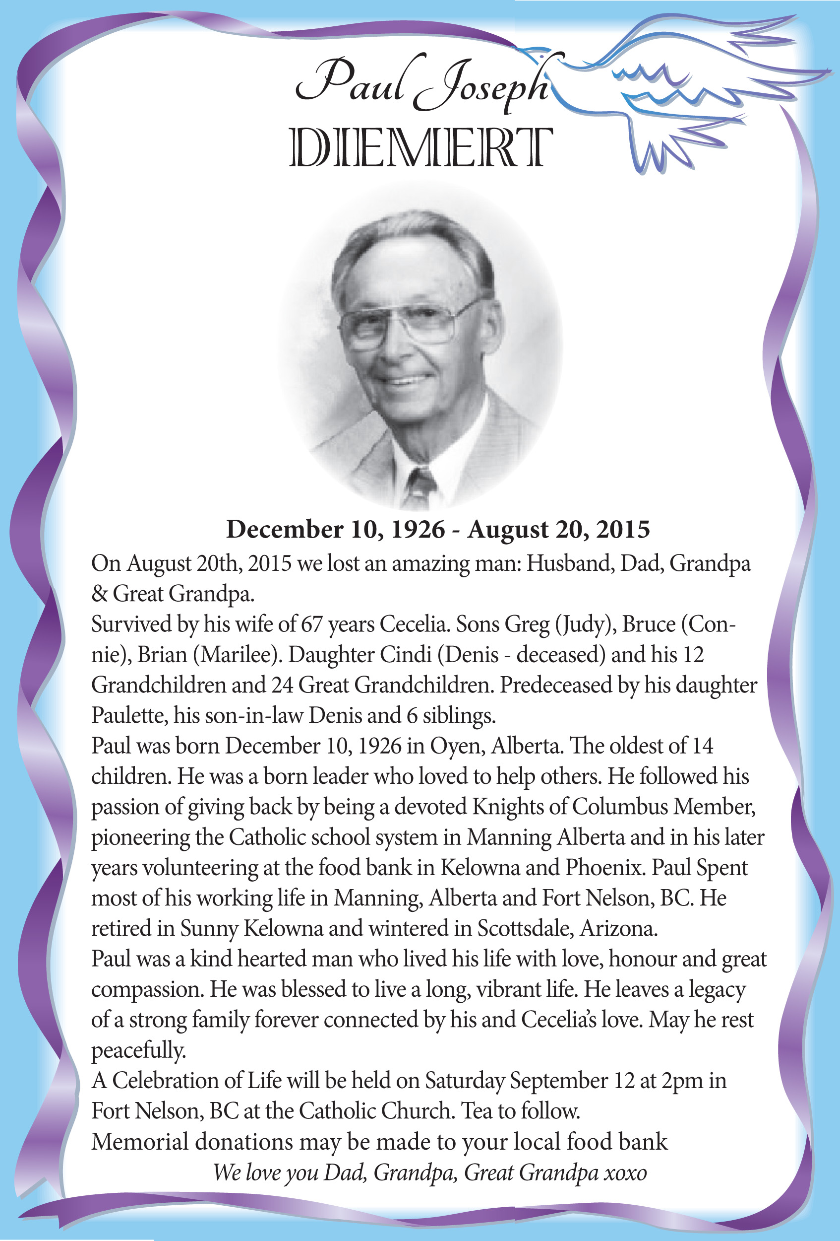 Obituaries 2015 – Paul Diemert