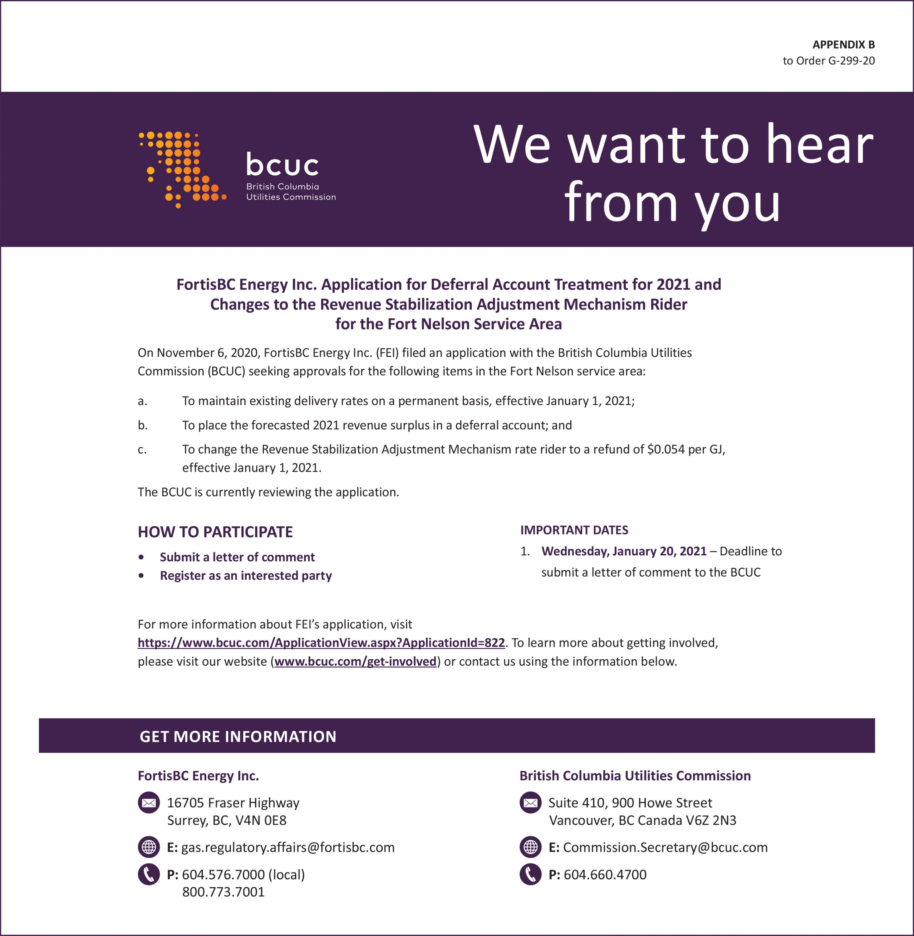 BCUC wants to hear from you in Fort Nelson