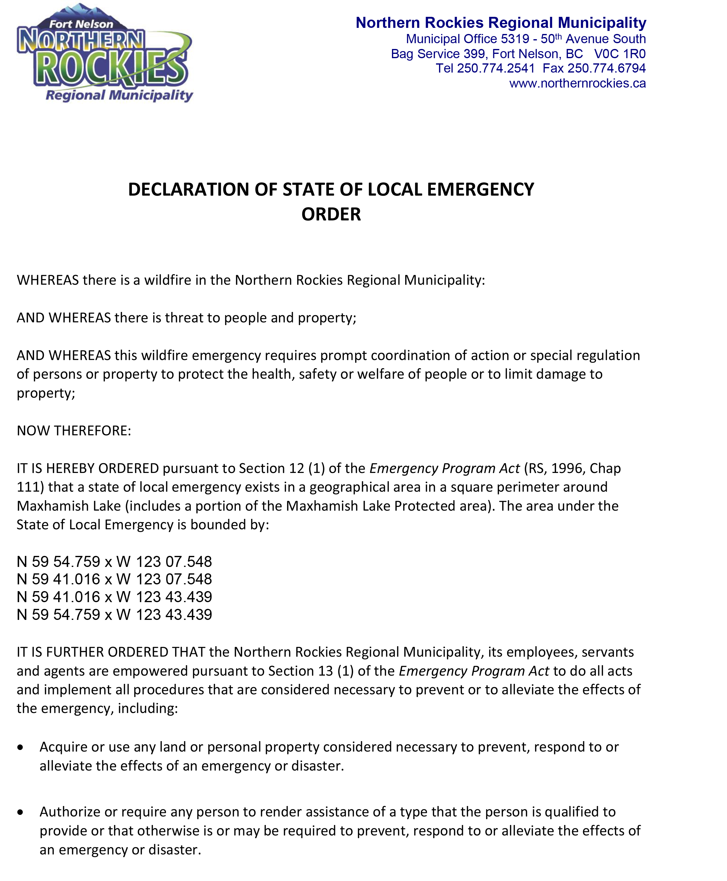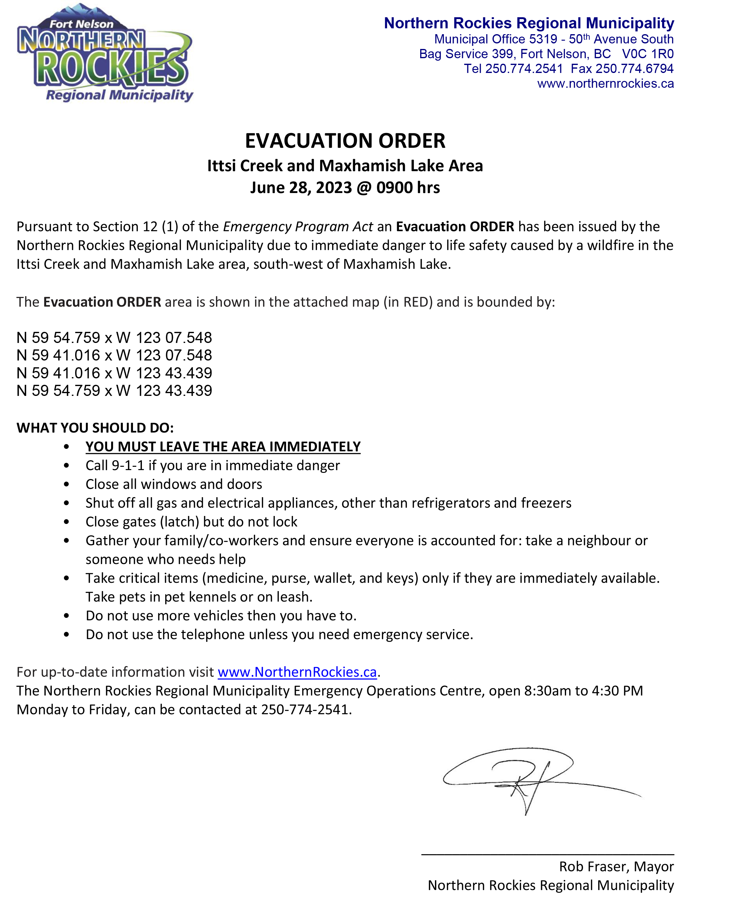 Evacuation Order for Ittsi Creek and Maxhamish Lake